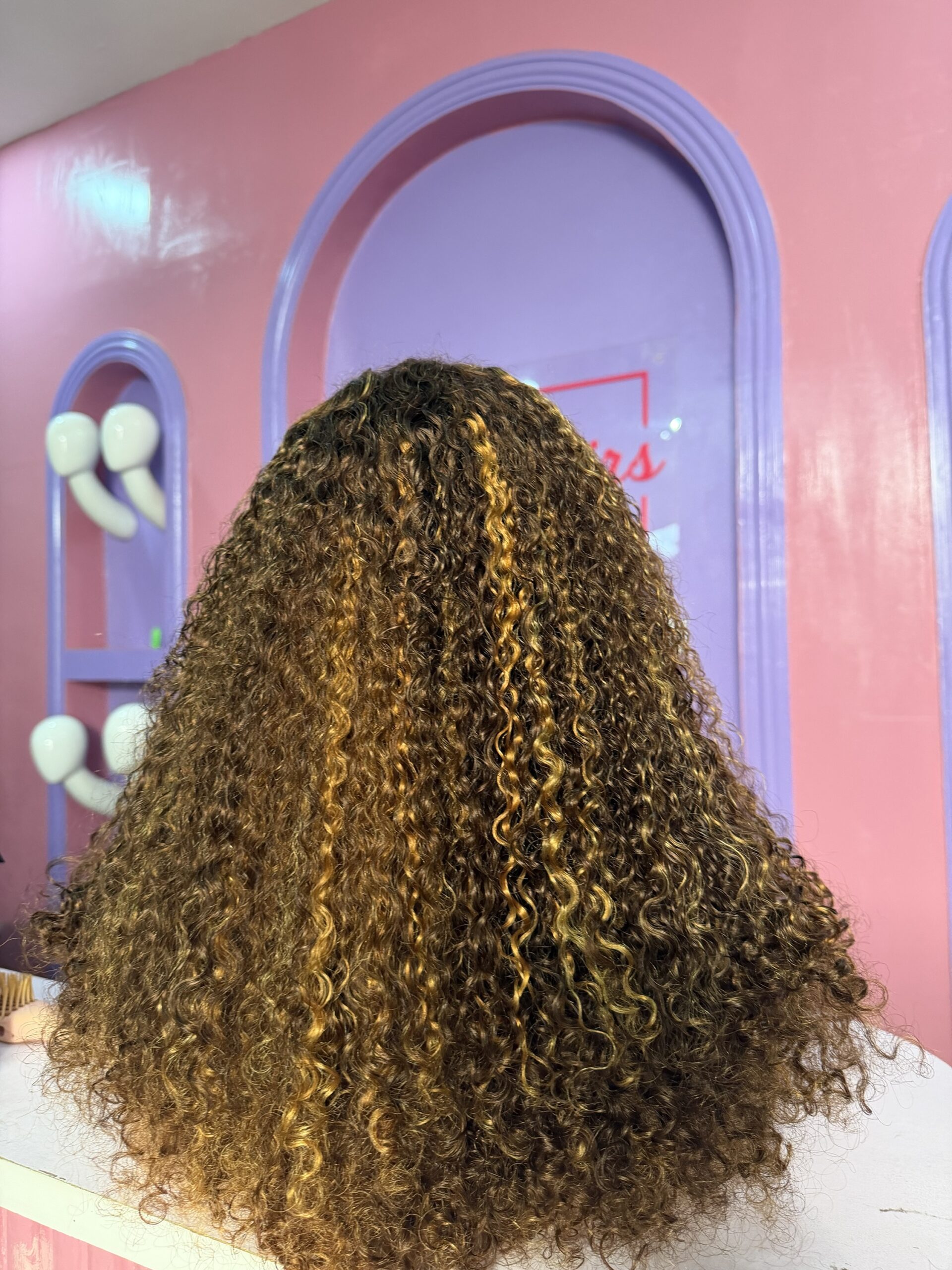 Super double drawn Piano highlighted pixie curls in 20inches paired with 5×5 closure factory wig